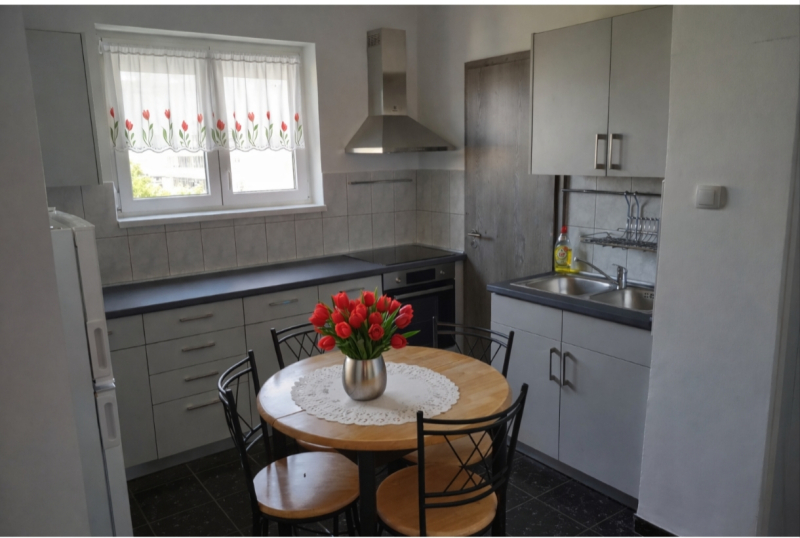 A lakás a Göncz Árpád Városközpont és az Árpád-híd közelében található a 3. metró és az 1. villamos közelében, kelet-nyugati fekvésű.